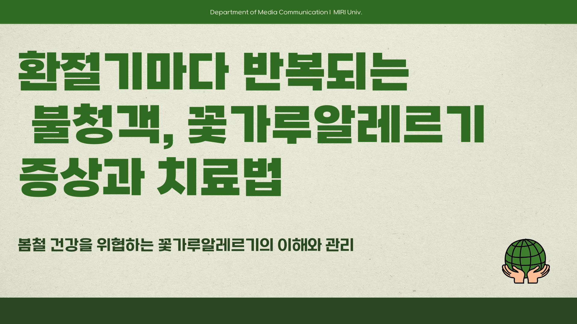꽃가루알레르기와 함께 찾아오는 계절성 불청객 따사로운 햇살과 함께 벚꽃이 흐드러지게 피는 봄, 하지만 모든 이에게 반가운 계절은 아닙니다.꽃가루알레르기를 앓고 있는 사람들에게 봄은