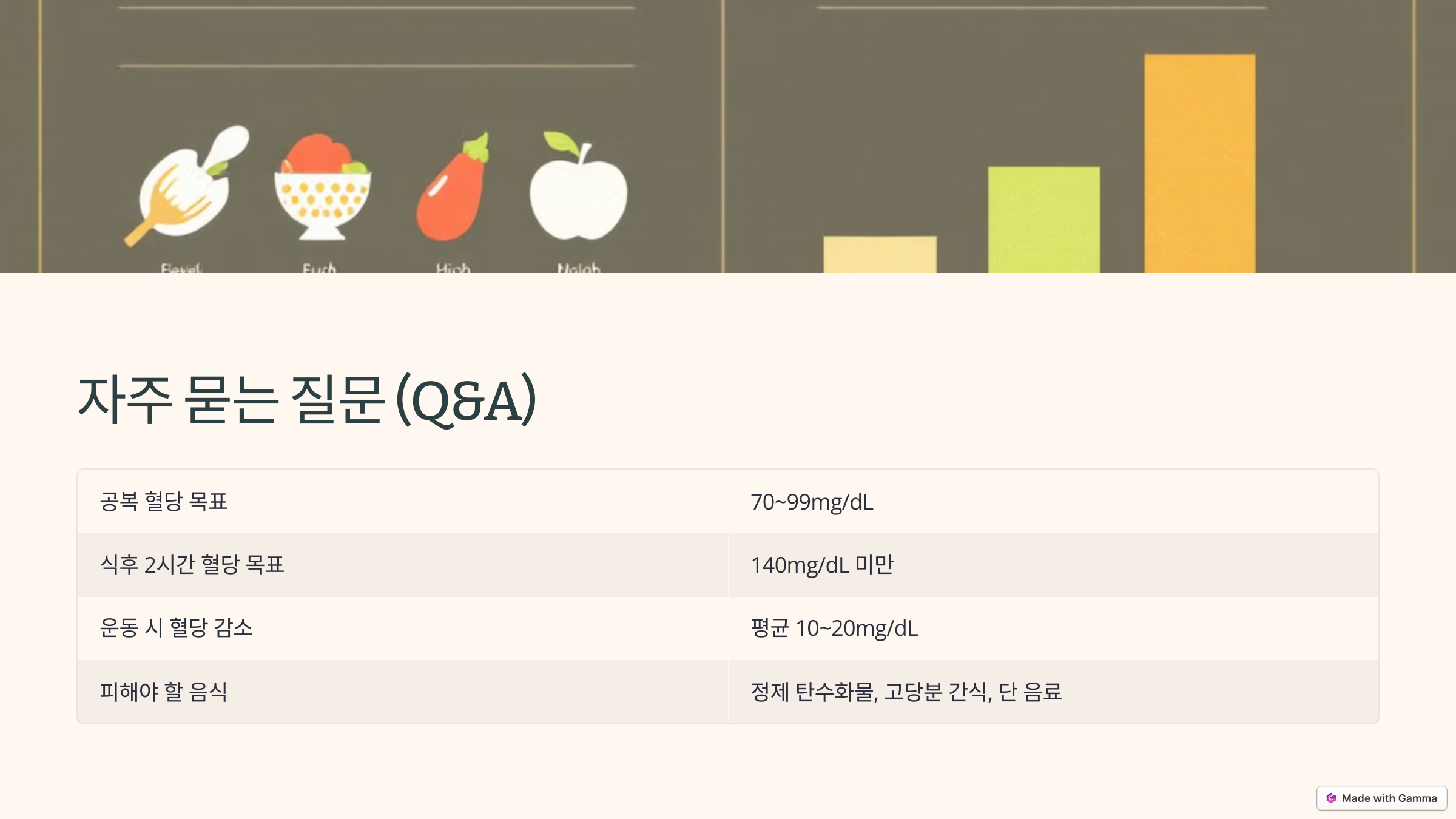Q1: 공복 혈당과 식후 혈당의 목표 수치는 무엇인가요?