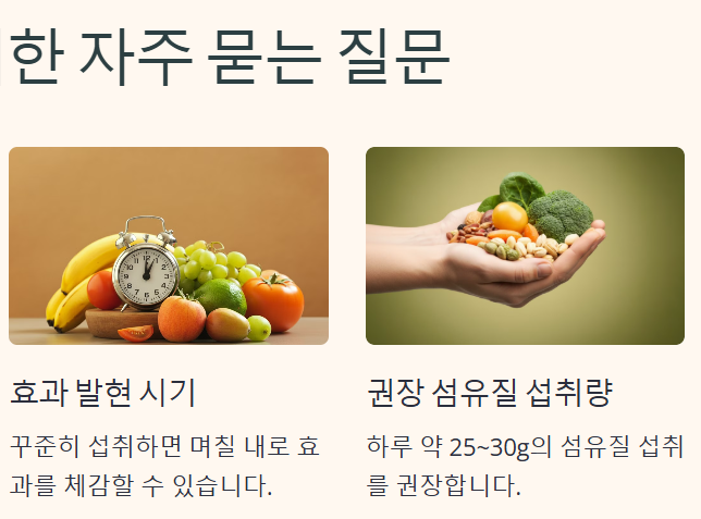 A. 하루 약 25~30g의 섬유질 섭취가 권장됩니다.