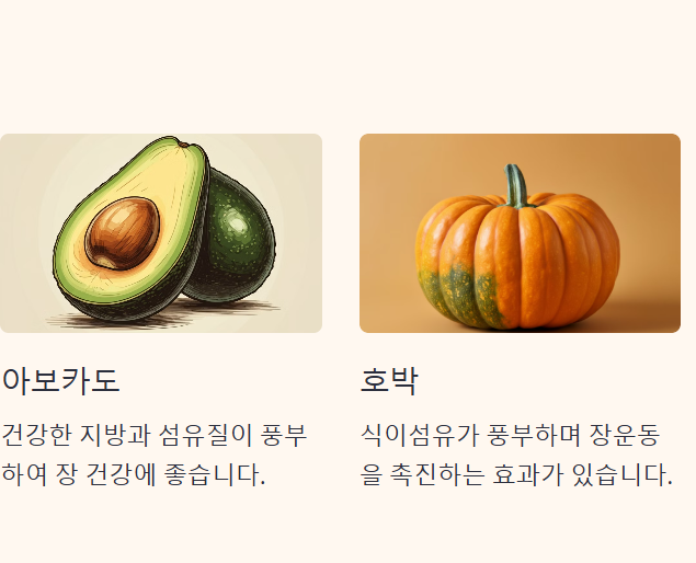 - 아보카도는 불용성 섬유질과 건강한 지방이 풍부해 소화를 돕고 장운동을 촉진합니다.