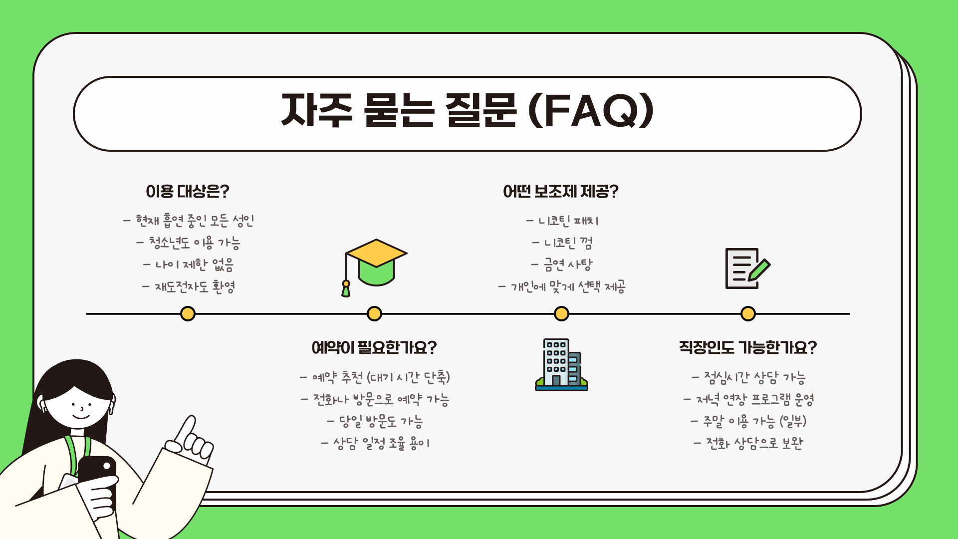 금연을 희망하는 누구나 무료로 이용할 수 있어요.