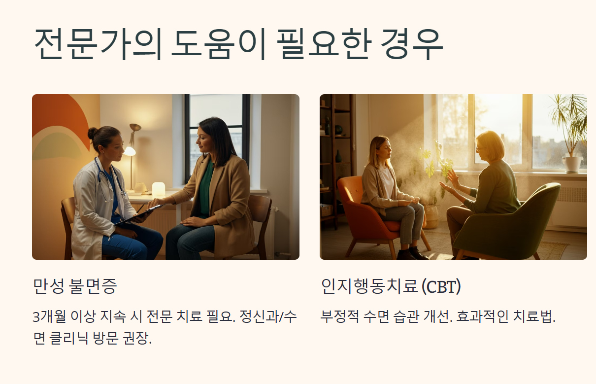 - 3개월 이상 지속되는 불면증은 전문적인 치료가 필요합니다.