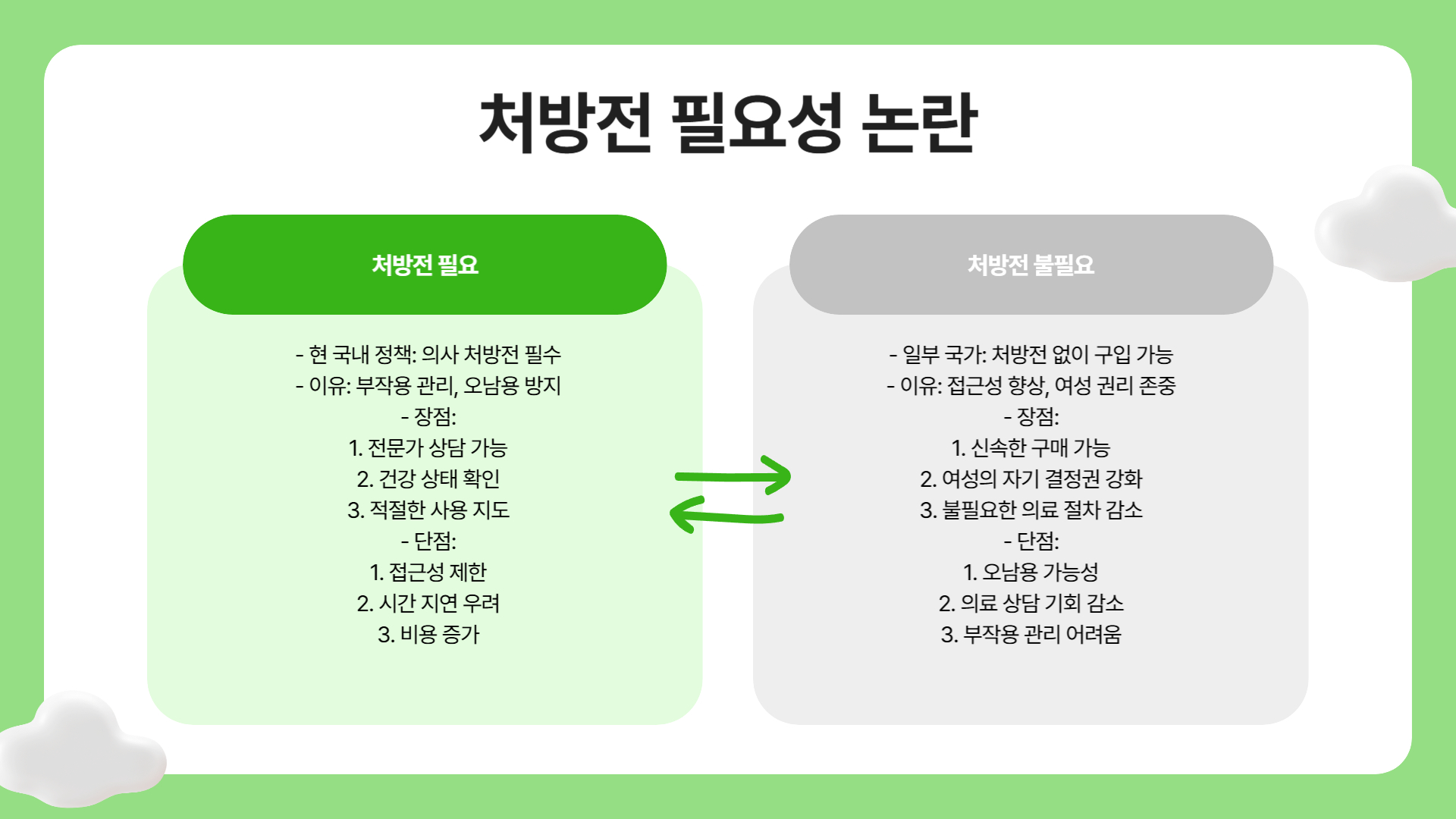 - 성관계에 대한 경각심 저하: 사후피임약의 손쉬운 접근이 성관계에 대한 책임감을 낮출 수 있다는 우려가 있습니다.