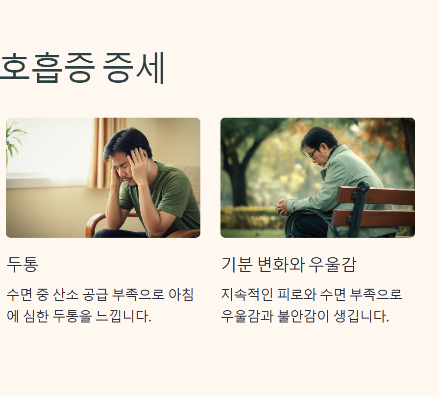 - 수면 무호흡증 증세로 인해 일상생활에서 피로감과 무기력함이 지속됩니다.