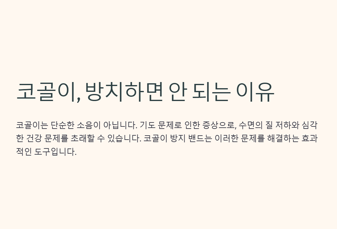 - 코골이의 원인이 비강 문제(코막힘, 비중격만곡증 등)인 경우 효과가 제한적일 수 있습니다.