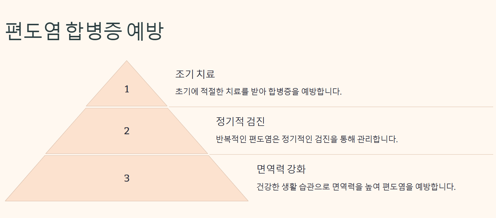 - 편도염 증상이 반복되거나 치료하지 않으면 만성 편도염으로 발전할 수 있습니다.