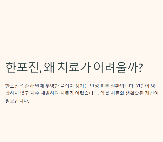 한포진은 쉽게 완치되지 않는 질환이지만, 꾸준한 관리와 올바른 치료 방법을 실천하면 증상을 크게 개선할 수 있습니다. 😊