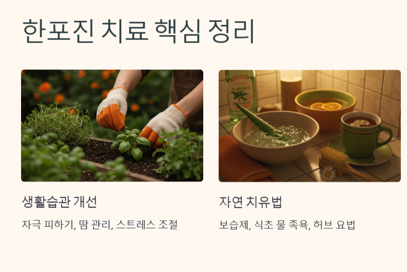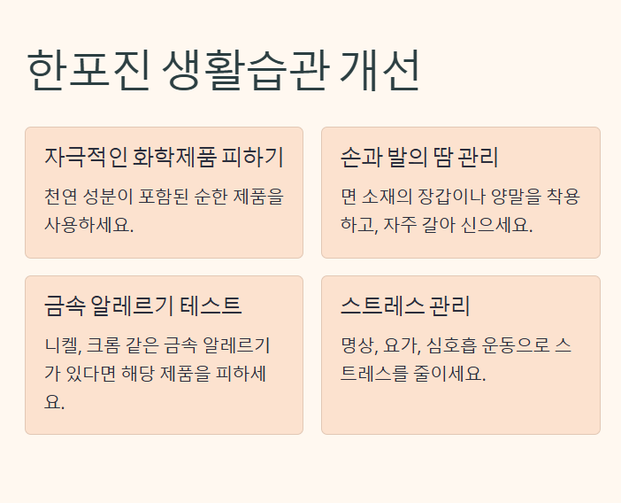 ✅ 한포진 치료방법에서 생활습관 개선은 장기적인 치료 효과를 높이는 데 필수적입니다.